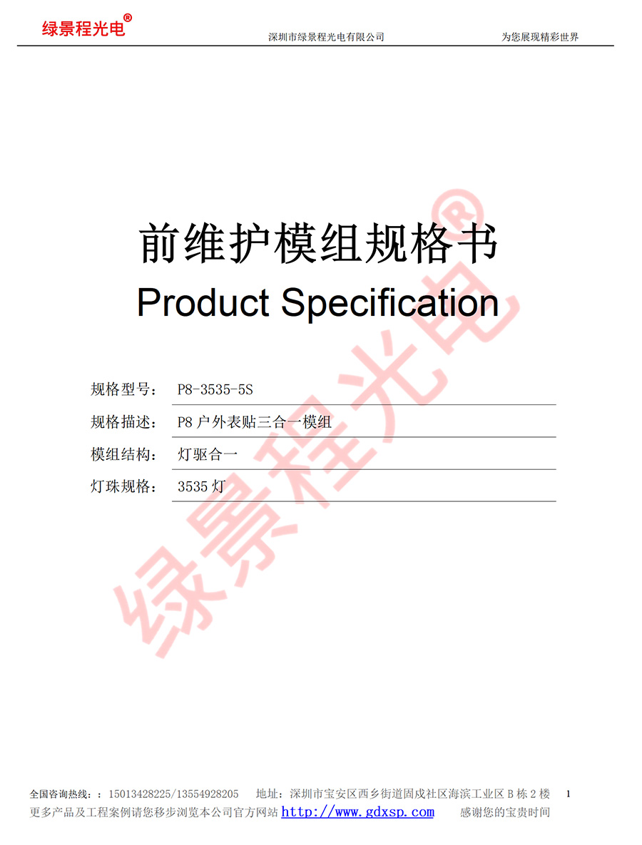 綠景程光電戶外前維護P8-SMD3535-5S-320X160mm