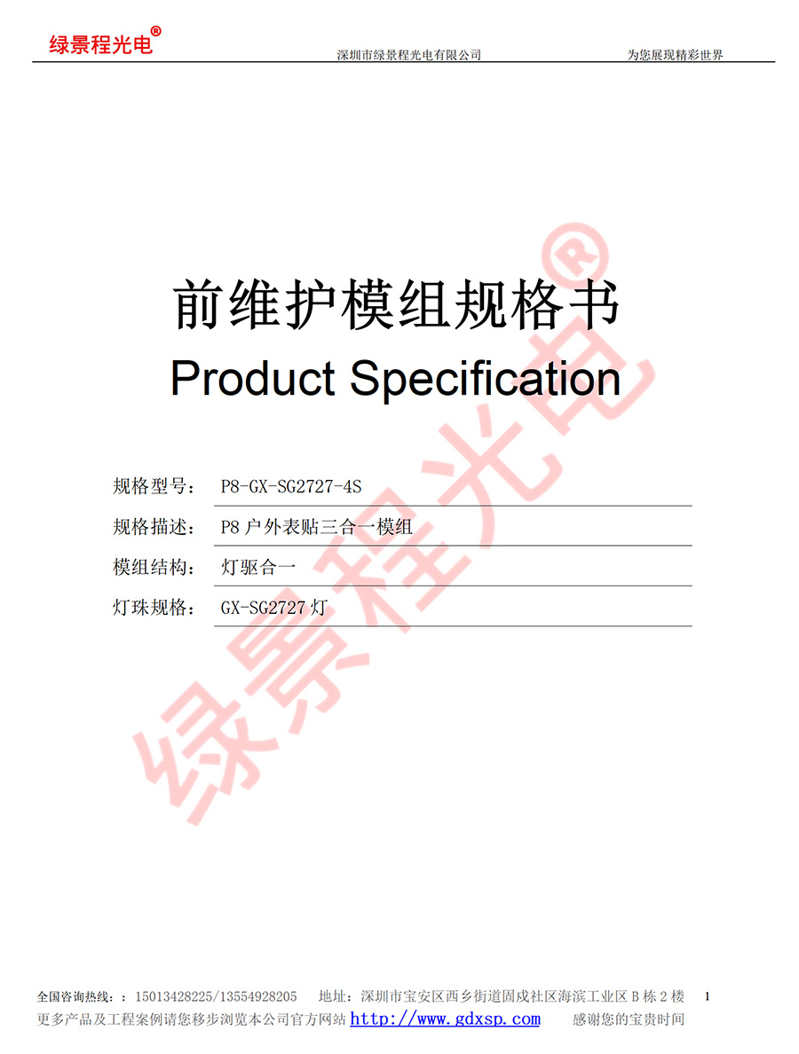 綠景程光電戶外前維護P8-SMD-GX-SG2727-4S-320X320mm