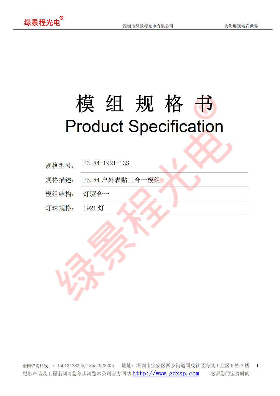 規格型號:P3.84-1921-13S